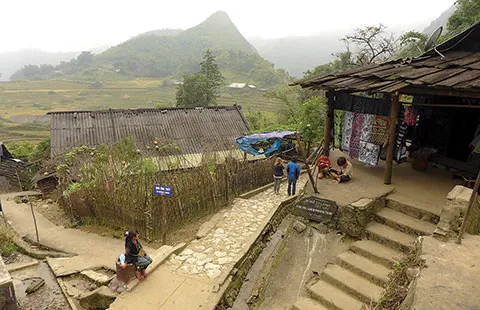 Cát Cát đổi thay quá nhiều. Bản làng thưa thớt chỉ vài chục nóc nhà dưới thung lũng xưa, giờ là địa chỉ du lịch thu hút nhiều du khách trong và ngoài nước. Đường chính trong bản đã đổ bê tông, nhiều ngôi nhà xây nền cao, có nhà lợp tôn, ngói. Dường như mỗi ngôi nhà ở trục đường chính của bản đều là một cửa hàng bán thổ cẩm, quà lưu niệm. Đi gần giáp vòng bản, tôi vẫn không tìm ra ngôi nhà xưa. Dân bản nhiều người chăm chú xem ảnh “người mẫu” rồi lắc đầu “không biết”.