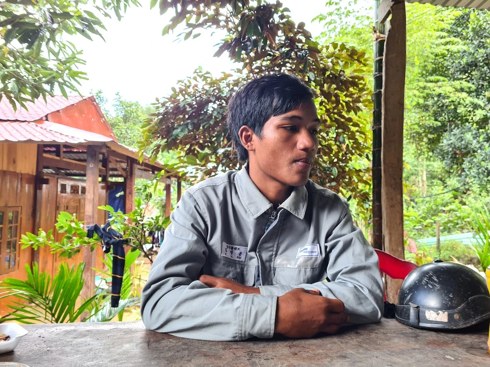 Anh Hồ Văn Hè (23 tuổi, ngụ làng Tăk Pát) cho biết, cơn lũ đổ về quá nhanh nuốt chửng cả ngôi làng, bà con không kịp giữ lại đồ đạc. Ảnh: THANH NHẬT