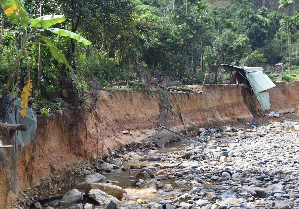 "Trận lũ đầu tiên cuốn trôi sáu nhà, trận thứ hai cuốn phăng mọi thứ. Nhìn tài sản bị cuốn trôi trước mắt nhưng tôi bất lực", anh Hè nhớ lại cảnh ngôi làng bị lũ cuốn. Ảnh: THANH NHẬT