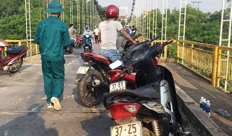 Người dân ra cầu treo Dùng tìm kiếm cô gái dưới sông Lam.
