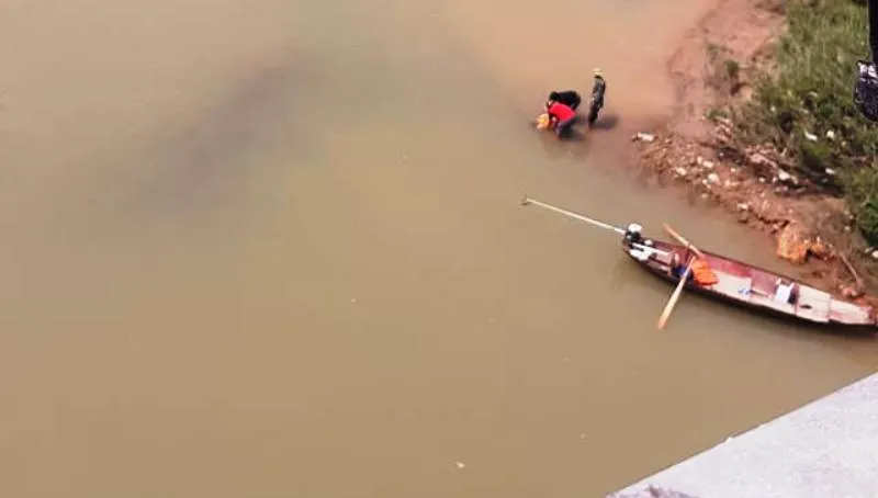Nghi vấn đã có vụ nhảy cầu tự tử, lực lượng tìm kiếm cứu nạn huyện Thanh Chương cùng người dân, người thân xuống sông Lam quần thảo, tìm kiếm cô gái.