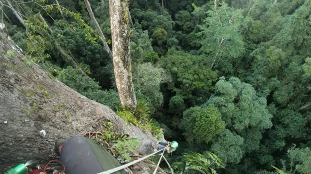 Anh Uinating Jami, một nhà leo núi địa phương, đã trèo lên cây bằng một thước dây và kể lại rằng leo lên cây rất "đáng sợ và nhiều gió".