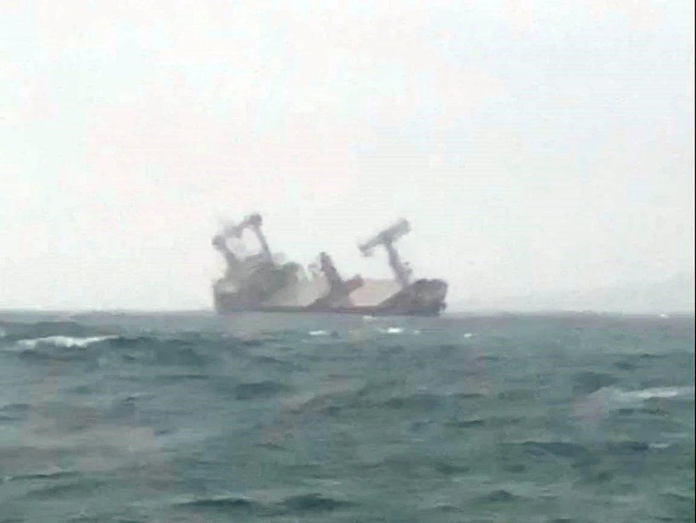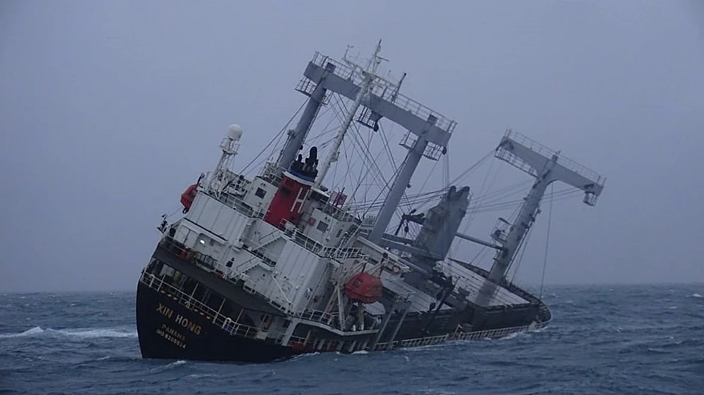 Tàu Xin Hong bị nghiêng và sắp chìm.
