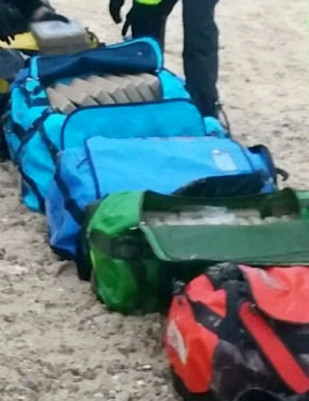 Số lượng lớn ma túy được tìm thấy trong các túi du lịch trôi dạt. Ảnh: MIRROR