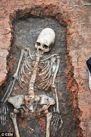 Hình ảnh bộ xương người phụ nữ đầu hình nón tại Arkaim, Nga. Nguồn: Dailymail