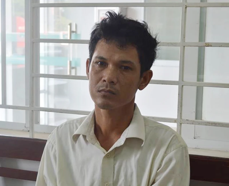 Nghi can Hoàng tại cơ quan công an. Ảnh: K.LY