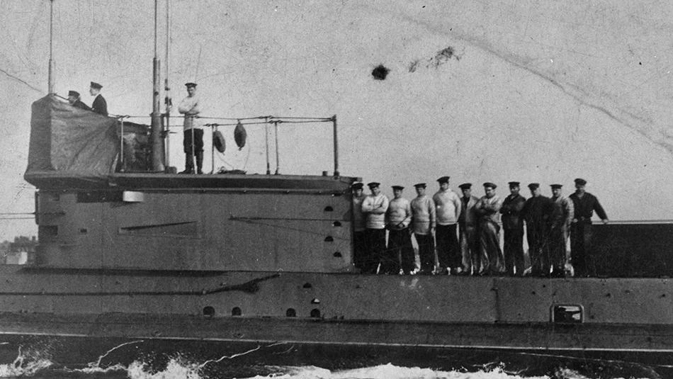 Tàu ngầm AE1 và thủy thủ đoàn vào năm 1914. Ảnh: HẢI QUÂN ÚC