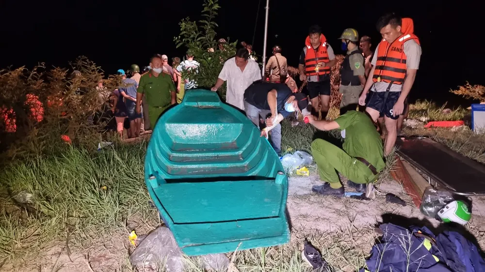 Lực lượng cứu hộ cùng người dân địa phương đã mang phao, lặn tìm kiếm các nạn nhân. Đến gần 24 giờ đêm, lực lượng cứu hộ mới tìm thấy thi thể cuối cùng của ba thanh niên…
