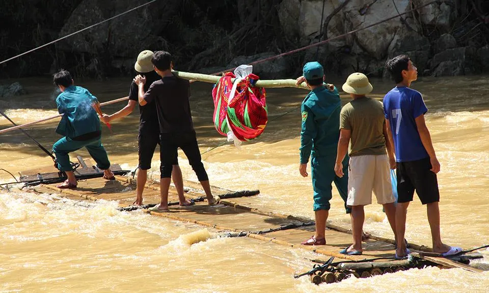Lực lượng cứu hộ tìm thấy thi thể em Hà Văn Quỳnh trên suông Luồng. Ảnh: ĐẶNG TRUNG