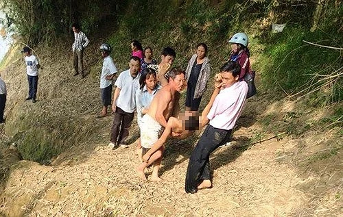 Đưa thi thể dưới sông Lam lên bờ.