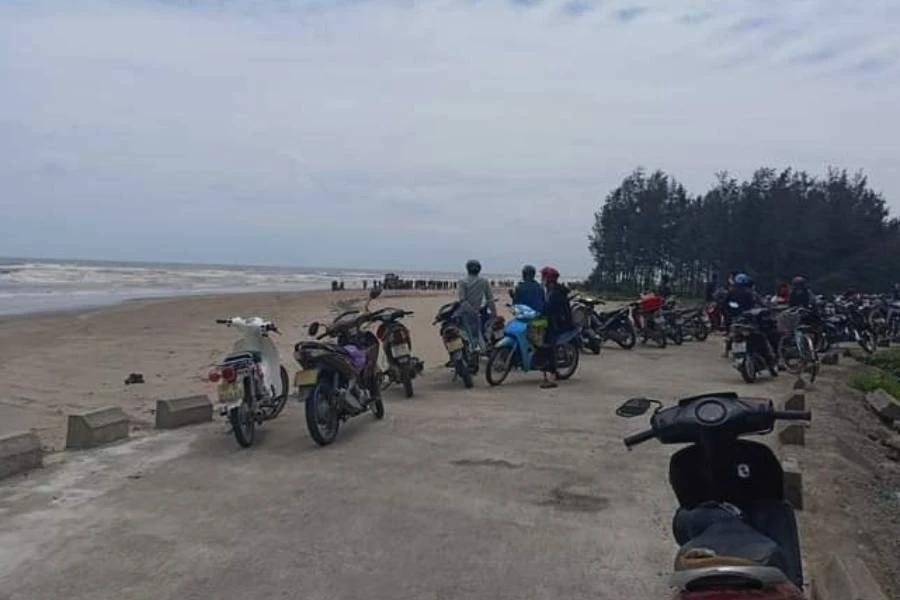 Rất đông người dân ra bờ biển tham gia tìm kiếm ngư dân Nguyễn Văn Thỏa.