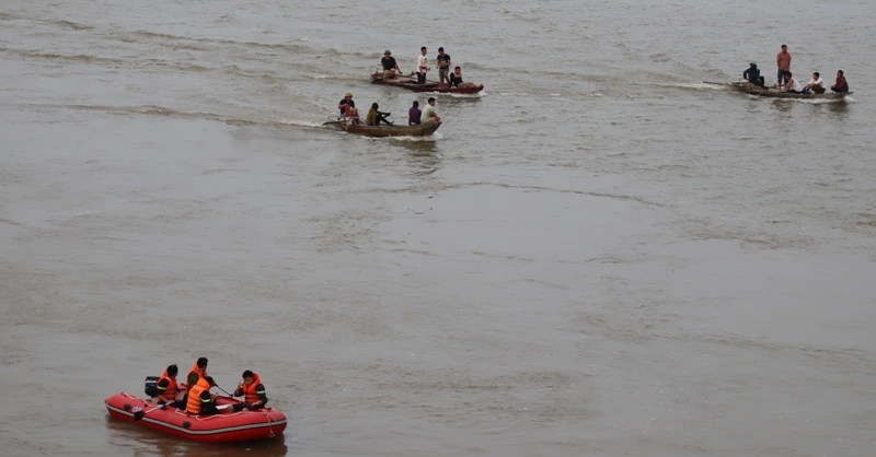 Nhận được tin báo, Phòng Cảnh sát PCCC và cứu nạn, cứu hộ (Công an tỉnh Nghệ An) đã cử hàng chục cán bộ, chiến sĩ đưa xuồng, ca nô, thiết bị ra sông Lam tìm kiếm anh A.