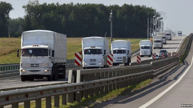 Trong khi đó, đoàn xe lớn hơn bao gồm 270 chiếc khác, mà theo Moscow tuyên bố đó là đoàn xe cung cấp hàng cứu trợ cho dân thường ở vùng chiến sự, vẫn đang án binh bất động ngay tại biên giới Nga-Ukraine.