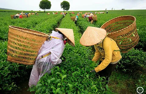 Thu hoạch trà ở Bảo Lộc, Lâm Đồng. Ảnh: TRỊNH VĂN TRUNG