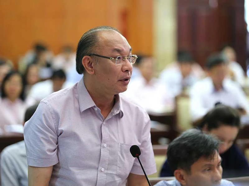 Giám đốc Công an TP.HCM Lê Đông Phong phát biểu tại kỳ họp. Ảnh: HOÀNG GIANG