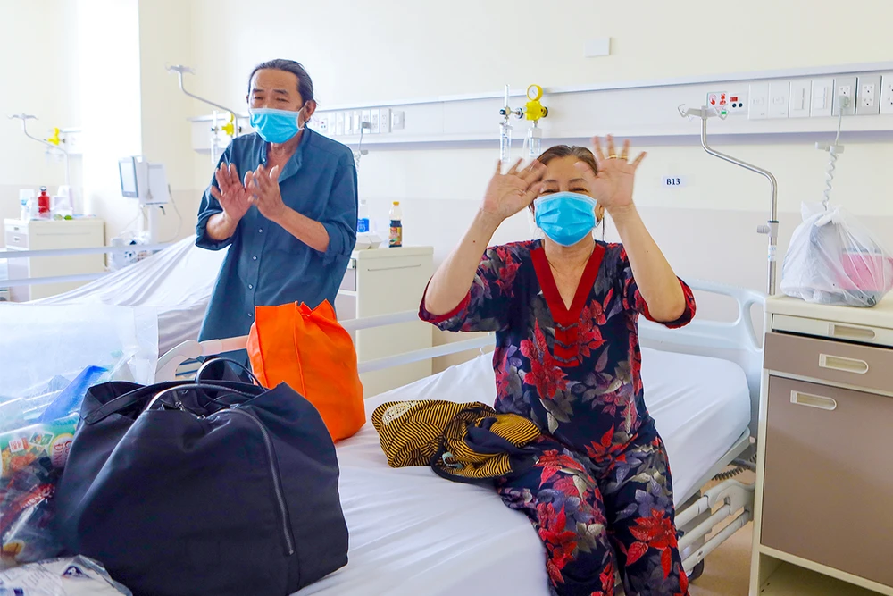 Bệnh nhân điều trị tại Bệnh viện hồi sức COVID-19 (TP Thủ Đức, TP.HCM) vui mừng ngày xuất viện. Ảnh: NGUYỆT NHI