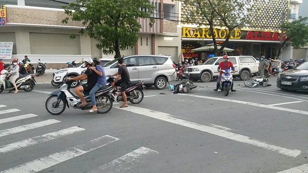 Đến gần giao lộ nói trên, do chạy tốc độ cao, không làm chủ tay lái, nhóm bốn người đã va trúng chiếc ô tô bảy chỗ và ngã ra đường. Trinh sát cùng người dân khống chế được hai trong bốn thanh thiếu niên đưa về trụ sở.