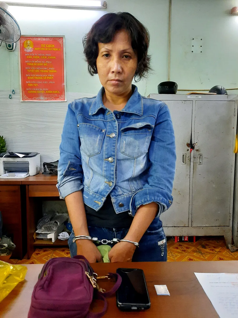 Bà An bị công an phát hiện tàng trữ ma túy gần một khách sạn trên địa bàn quận Bình Tân. Ảnh: CA