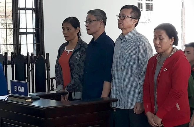 Các bị cáo Phương, Minh, Hải và Mai Đế (từ trái qua) tại phiên tòa sơ thẩm. Ảnh: TUẤN KIỆT-Vietnamnet