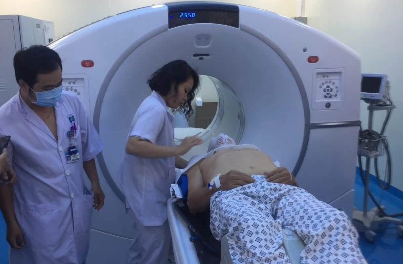 Một bệnh nhân ung thư đang được sử dụng máy PET/CT. Ảnh: BVCC