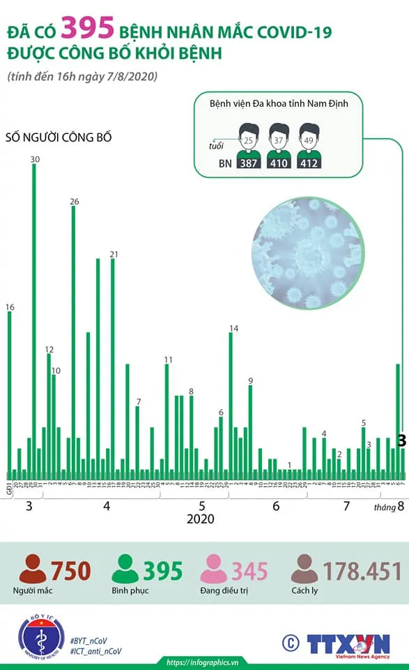 Việt Nam có tổng cộng 395 bệnh nhân COVID-19 được công bố khỏi bệnh