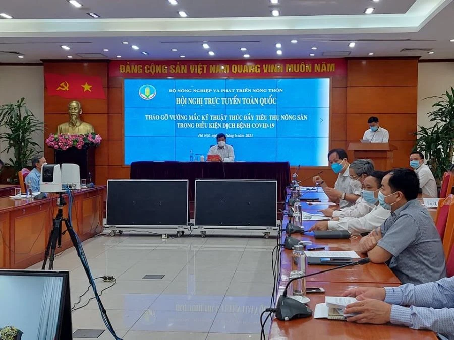 Hội nghị Tháo gỡ vướng mắc kỹ thuật thúc đẩy tiêu thụ nông sản trong điều kiện dịch bệnh COVID-19. Ảnh: AH