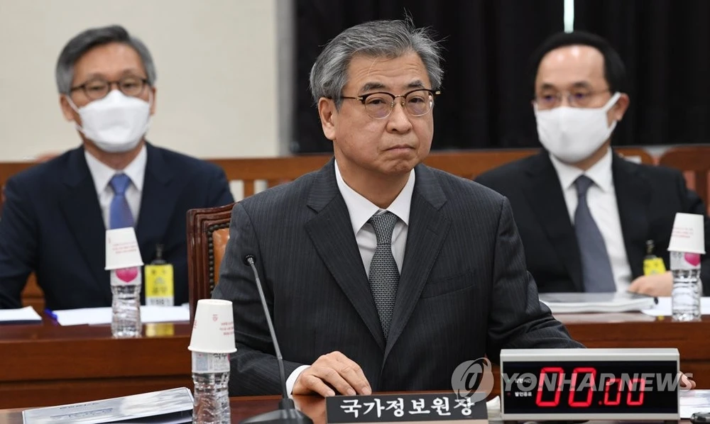 Giám đốc Cơ quan tình báo quốc gia Hàn Quốc (NIS) Suh Hoon chuẩn bị bước vào cuộc họp với các nhà lập pháp tại Quốc hội Hàn Quốc ngày 6-5. Ảnh: YONHAP