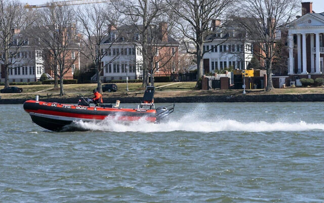 Thuyền cứu hỏa của quận Columbia (Washington DC, Mỹ) trên tuyến đường thủy gần pháo đài Lesley J. McNair hôm 19-3. Ảnh: Jacquelyn Martin/AP