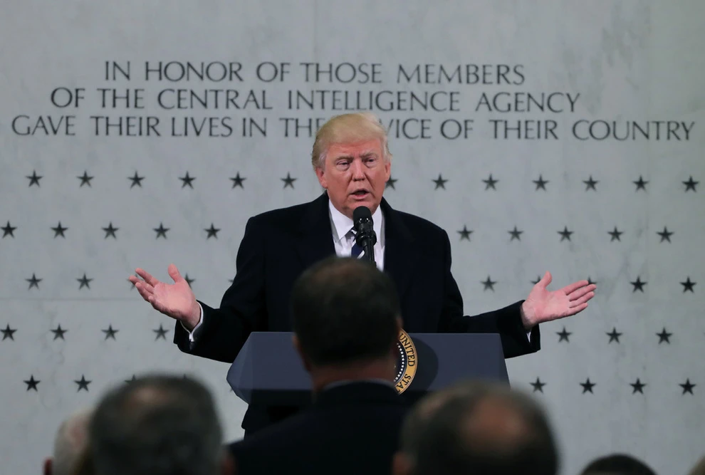 Ông Trump gặp gỡ các thành viên Cơ quan Tình báo Trung ương Mỹ (CIA) sau khi nhậm chức. Ảnh: Reuters