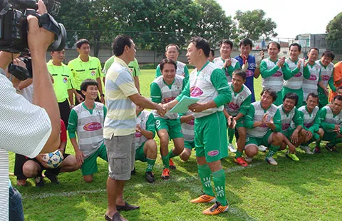 Sáng sớm 8-3, các cựu cầu thủ TP.HCM lấy tên Trường Nghiệp vụ từ thế hệ Đặng Trần Chỉnh, Đặng Trần Phúc, Nguyễn Thanh Tùng, Nguyễn Quốc Việt, Nguyễn Hồng Phẩm đến lứa Lư Đình Tuấn, Minh “lép”, Dương Quốc Lộc, Thế Cường và cả những HLV đã và đang trải qua quá trình huấn luyện tại Trường Nghiệp vụ đã rong ruổi xuống Bình Dương đá trận từ thiện giúp bạn. Trong số đó còn có cả cựu vua phá lưới Nguyễn Công Long từng khoác áo đội Bình Định trong những năm 1990 cũng kịp có mặt và ra sân.