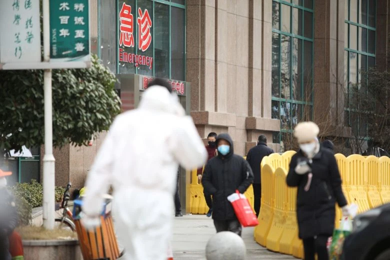 Bên ngoài BV trung ương Vũ Hán (Trung Quốc). Ảnh: REUTERS
