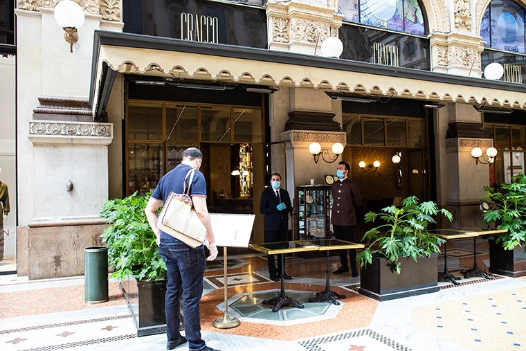 Nhà hàng Chef Carlo Cracco ở trung tâm mua sắm Galleria Vittorio Emanuele sầm uất tại Milan, Ý sẽ mở cửa trở lại vào ngày 16-5, với dịch vụ mua mang đi. Ảnh: GETTY IMAGES