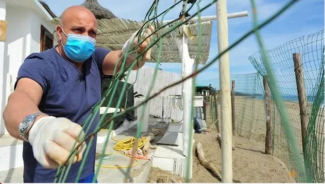 Người dân đeo khẩu trang khi dịch COVID-19 xuất hiện tại khu đô thị Castiglione della Pescaia, tỉnh Grosseto thuộc vùng Toscana của Ý. Ảnh: CNA