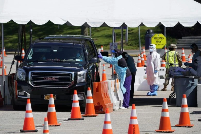 Người dân xếp hàng trong xe chờ xét nghiệm COVID-19 tại khuôn viên Trường Cao đẳng cộng đồng Bergen ở bang New Jersey của Mỹ. Ảnh: AFP