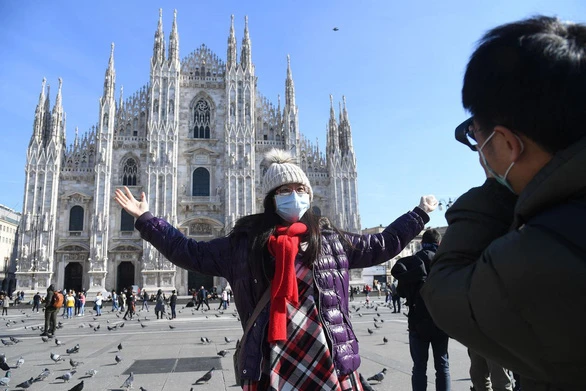 Một du khách Đài Loan đang chụp ảnh tại Milan cuối tháng 2-2020 - Ảnh: EPA