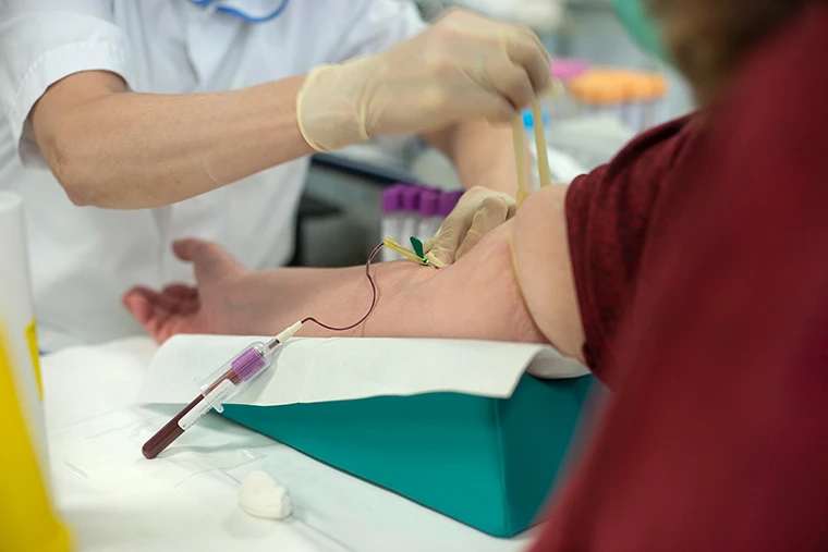 Một nhân viên y tế thực hiện xét nghiệm huyết thanh tại Bệnh viện Bellaria ở vùng Bologna của Ý. Ảnh: GETTY