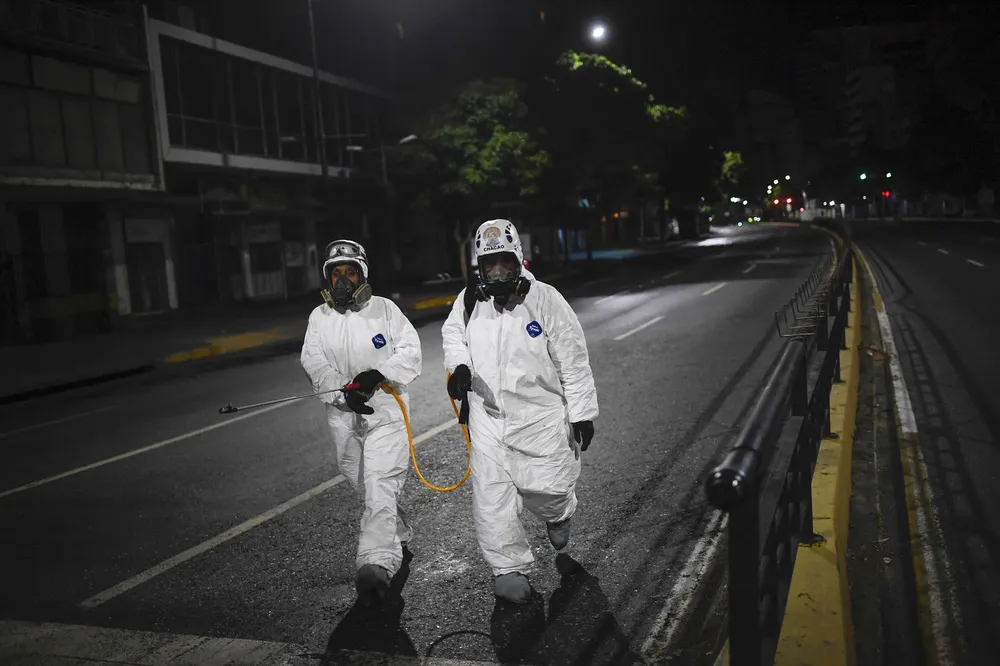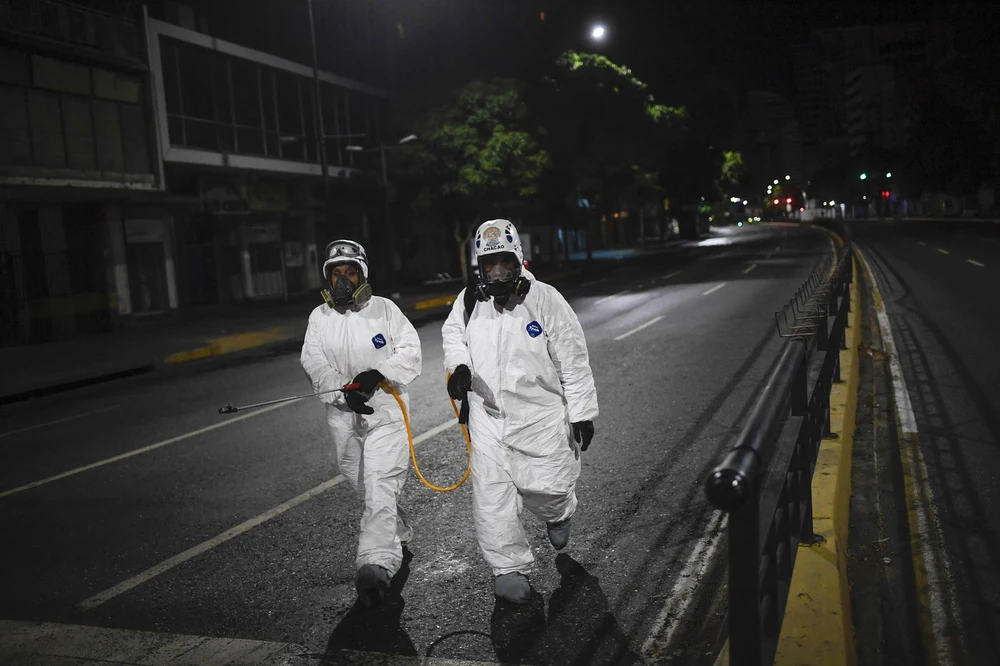 Nhân viên y tế khử trùng đường phố TP New York, Mỹ tối 21-3. Ảnh: CNN