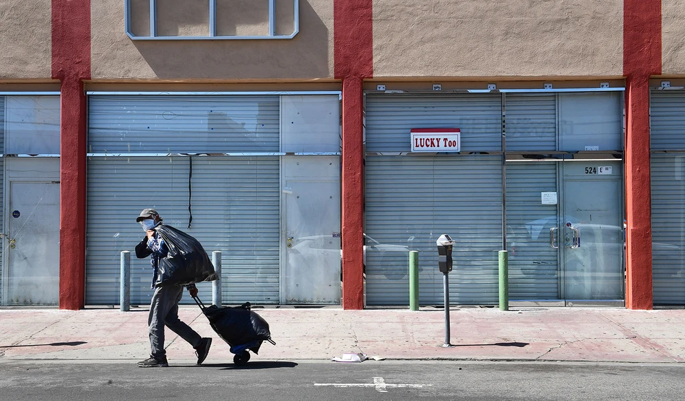 Các cửa hàng đóng cửa tại khu phố thời trang tại Los Angeles, bang California của Mỹ. Ảnh: GETTY