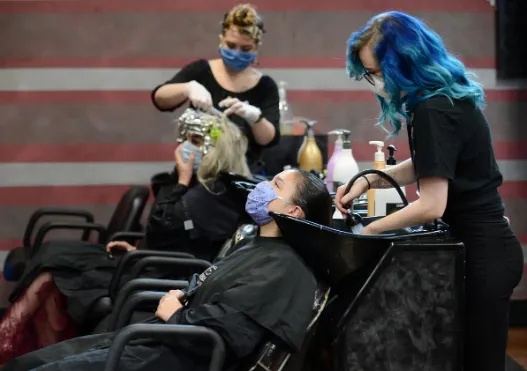 Người dân bang Georgia đi gội đầu, làm tóc khi chính quyền cho phép các doanh nghiệp này hoạt động trở lại. Ảnh: REUTERS