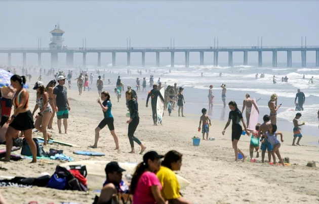 Mọi người đổ ra bãi biển của thành phố Huntington (bang California) vào ngày 25-4. Ảnh: REUTERS