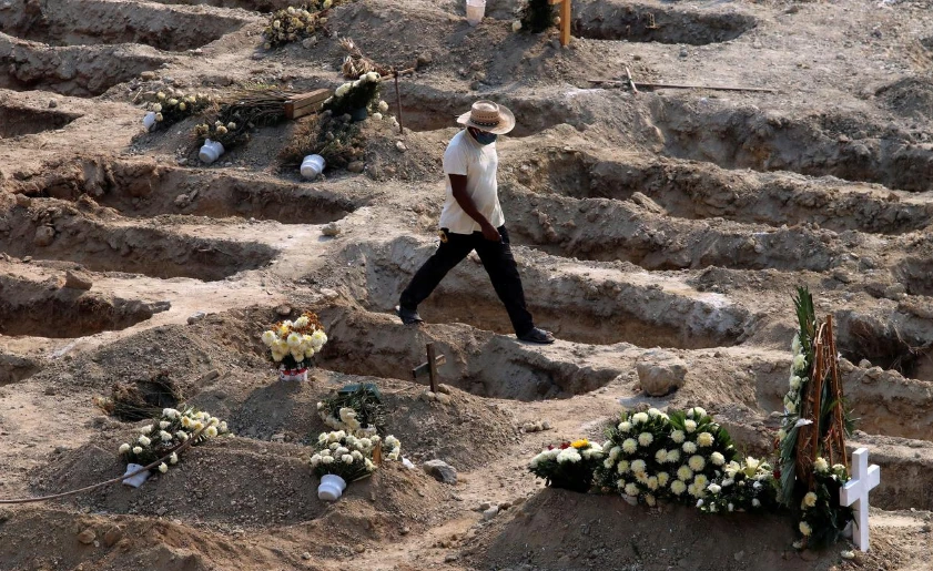 Một người đào mộ đi ngang qua những ngôi mộ làm sẵn cho bệnh nhân tử vong vì COVID-19, tại một nghĩa trang ở TP Acapulco, Mexico. Ảnh: REUTERS