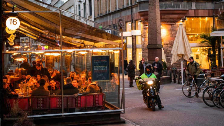 Mọi người ăn tối tại một nhà hàng ở Stockholm hôm 27-3. Ảnh: CNBC
