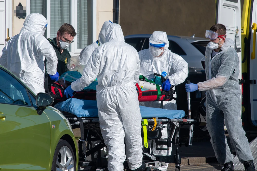 Nhân viên y tế di chuyển bệnh nhân nhiễm COVID-19 ở thị trấn Watford, Anh ngày 2-4. Ảnh: BBC