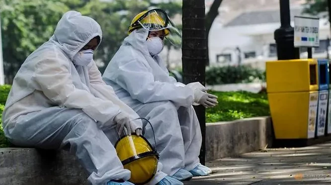 Nhân viên y tế nghỉ giải lao trong một cuộc xét nghiệm COVID-19 nhanh ở Bandung, tỉnh Tây Java của Indonesia. Ảnh: REUTERS