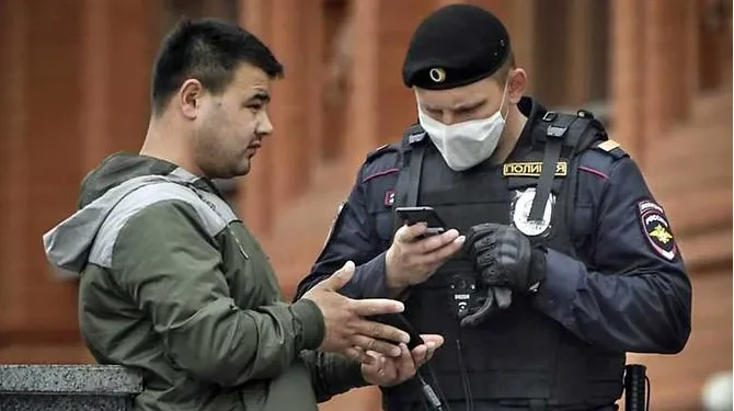 Một người đàn ông trình thẻ căn cước kỹ thuật số cho một sĩ quan cảnh sát ở Moscow. Ảnh: AFP