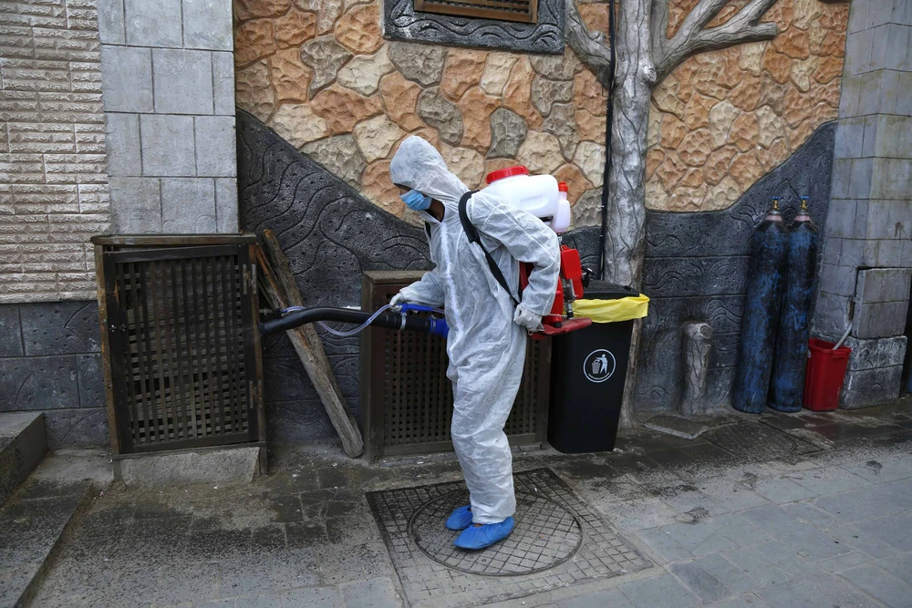 Khử trùng tại thủ đô Sanaa (Yemen). Ảnh: GETTY IMAGES