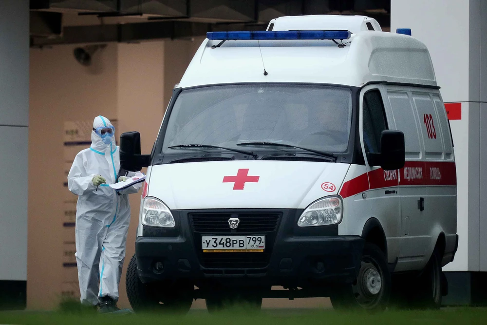 Xe cứu thương tại một trung tâm y tế ở Moscow dành cho những bệnh nhân nghi nhiễm COVID-19. Ảnh: GETTY