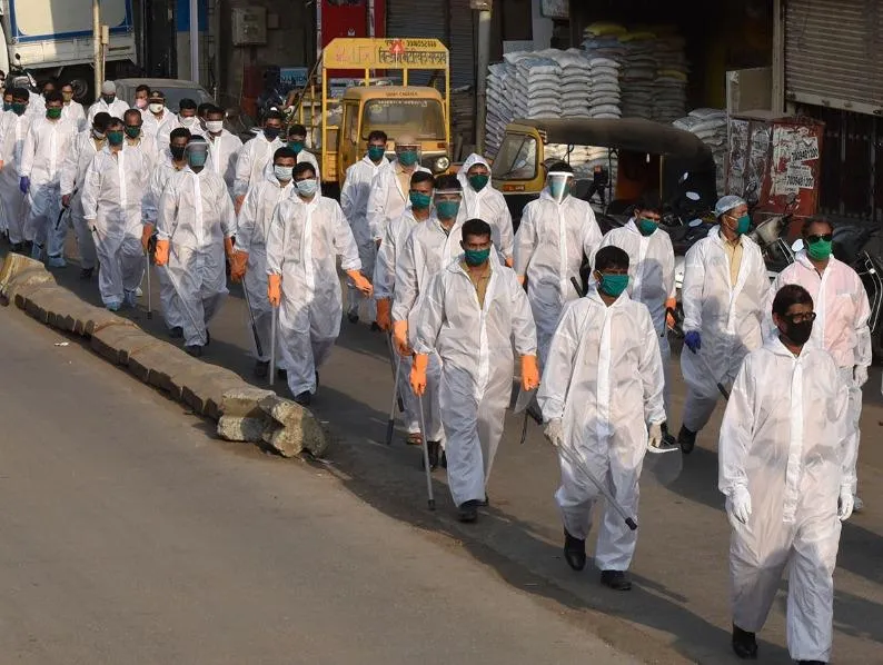 Lực lượng cảnh sát tuần hành qua khu phố Kandivali ở TP Mumbai, Ấn Độ trong thời gian phong tỏa toàn quốc. Ảnh: GETTY