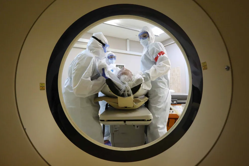 Nhân viên y tế điều trị một bệnh nhân COVID-19 tại bệnh viện lâm sàng TP Pirogov ở Moscow (Nga). Ảnh: GETTY
