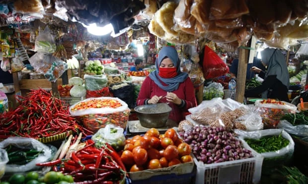 Một khu chợ ở Jakarta, Indonesia trong mùa COVID-19. Ảnh: EPA